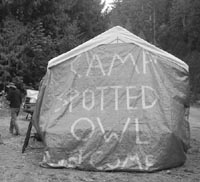 I write this Wild Times column whilst stationed in a Wilderness Committee research camp which is locatedup a logging road just east of Pemberton. Our little home away from home was set up in the bush in early September in response to a logging operation found to be felling trees right next to one of BC’s few remaining spotted owls. It’s not much of a research camp really. Just a large tent with some banners strung between the trees next to a little mountain stream with the strange name of S&M Creek. The banners say things like “Stop BC’s Chainsaw Massacre – Endangered Species legislation Now!” and “Ancient Forests Forever.” Our goal is to shame BC’s Minister in charge of endangered species, Pat Bell, into ordering a halt to the logging. But so far Minister Bell has no shame.