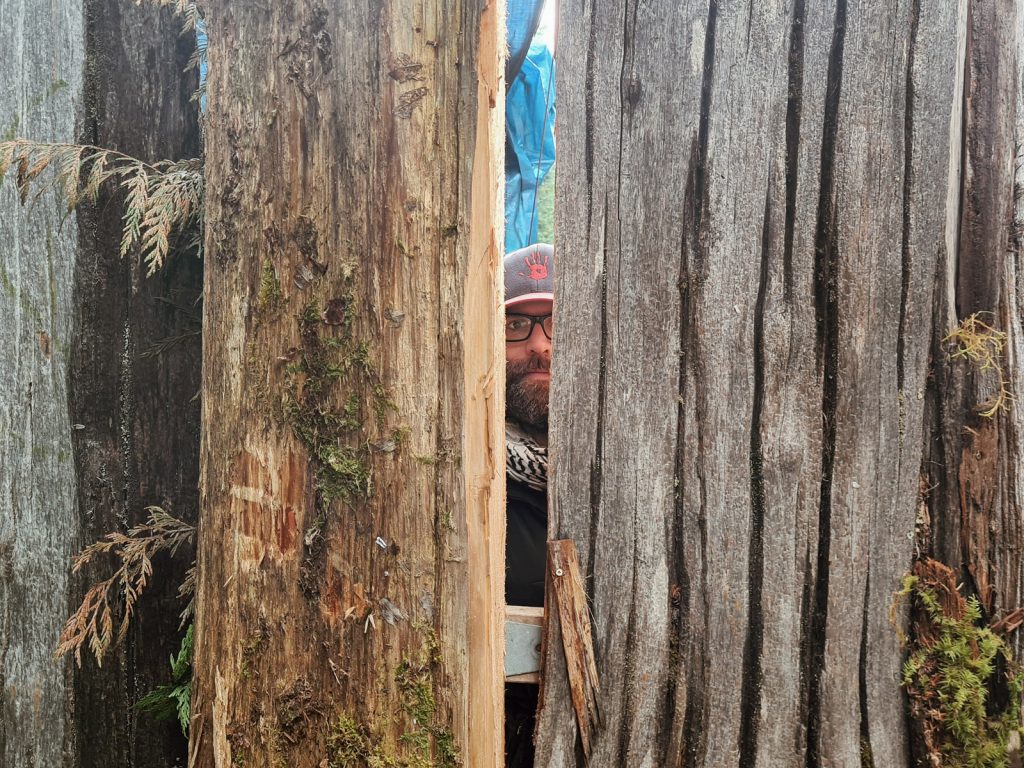 Deer is a young content creator who arrived while travelling through Vancouver Island, posting daily videos on his YouTube channel. He’d always appreciated trees in a scientific way, but hearing stories from Elder Bill and witnessing his relationship with the forest, deepened his own understanding and connection. Camp life gave him structure and cut through distraction like phone addiction. Less stressed and in a “happy state of mind,” his motivation shifted from self-driven production to participating in daily work, with a longer vision: a comprehensive documentary to build international understanding and involvement, trusting that outside pressure can “embarrass the locals into acting.”